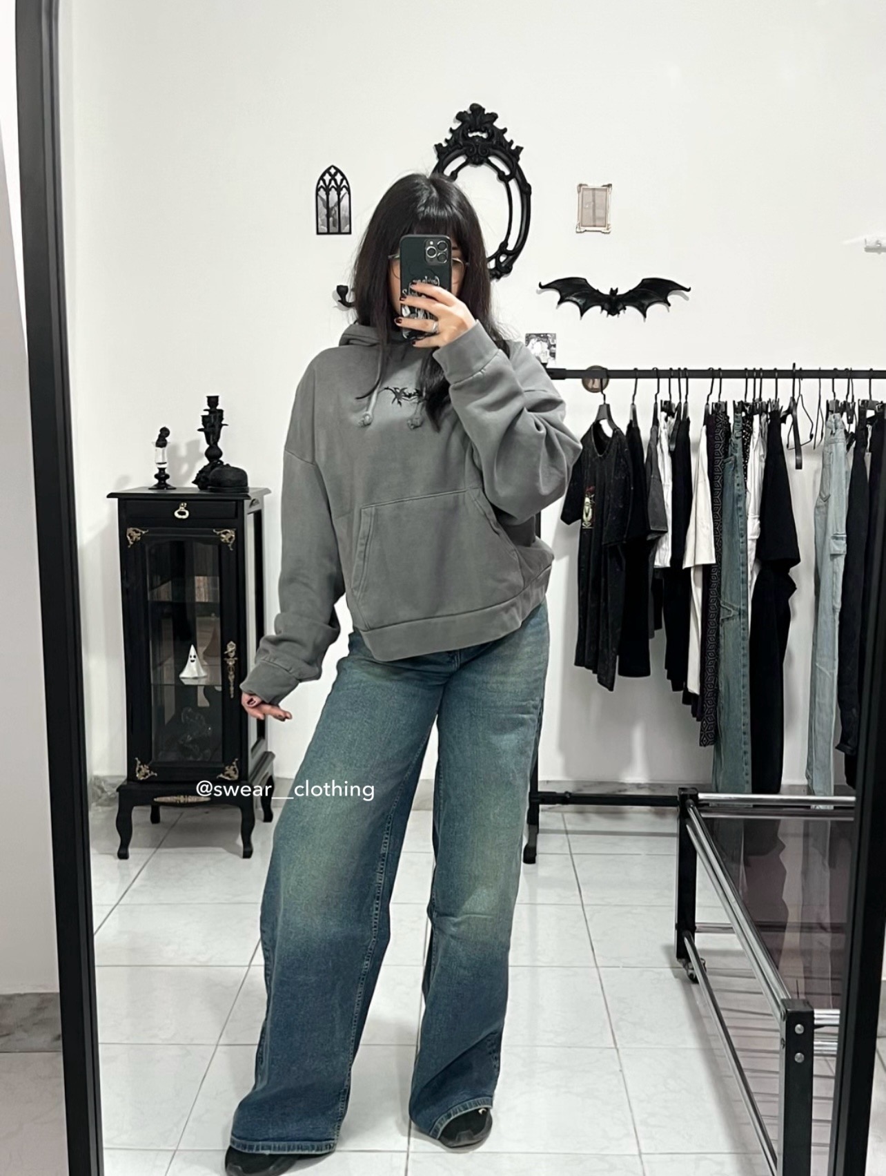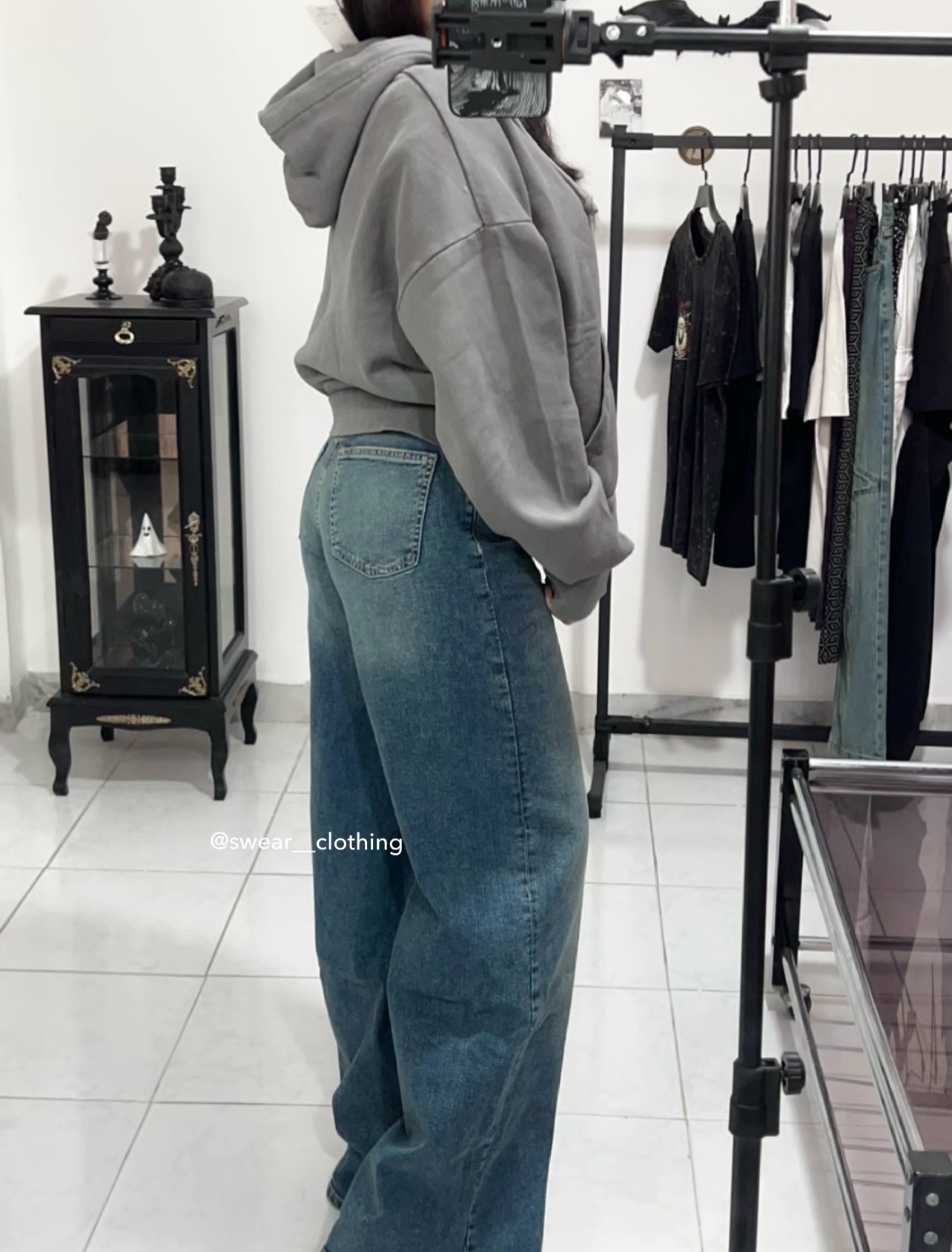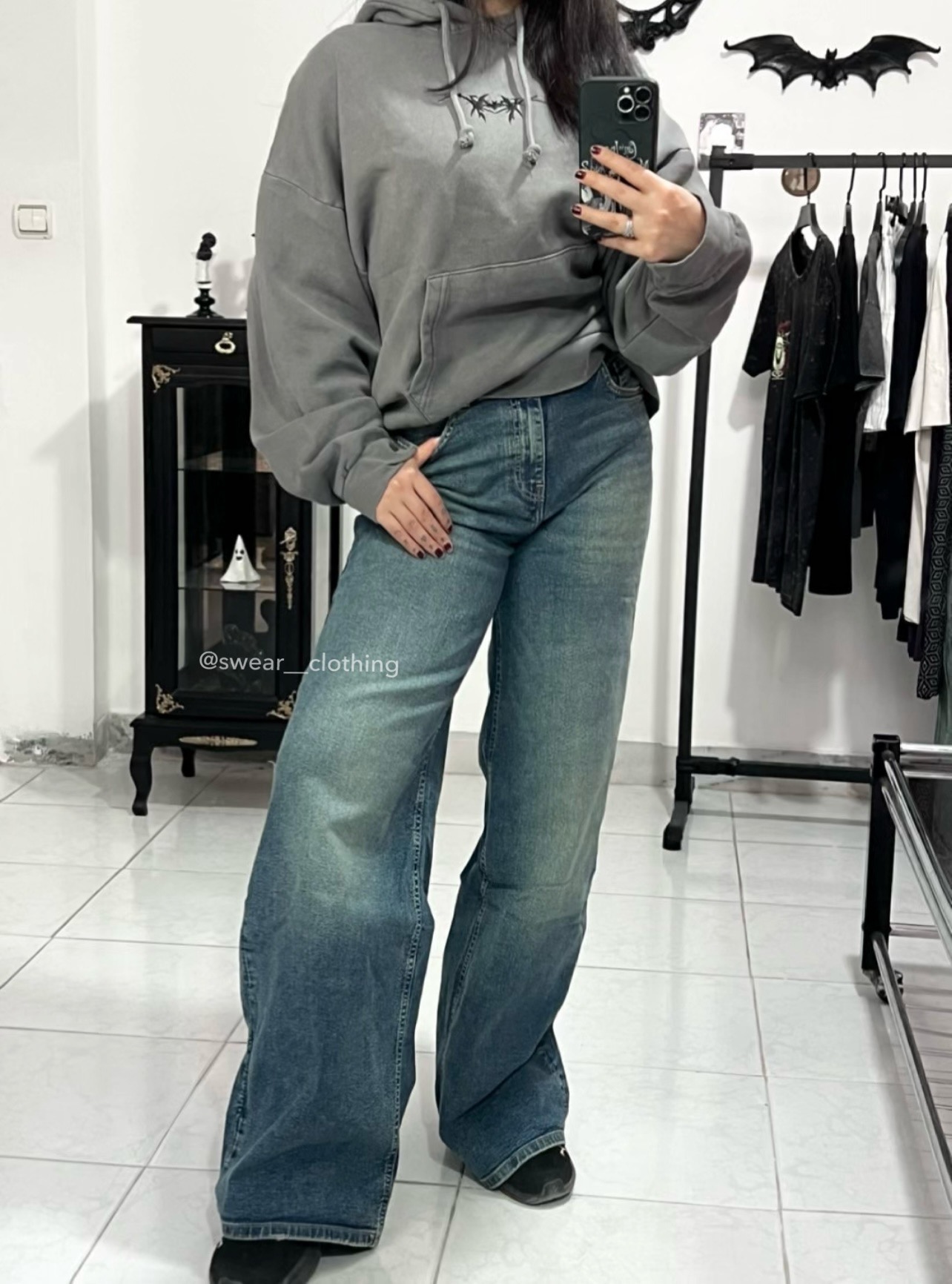 شلوار واید لگ تالی رنگ سرمه ای کثیف شور