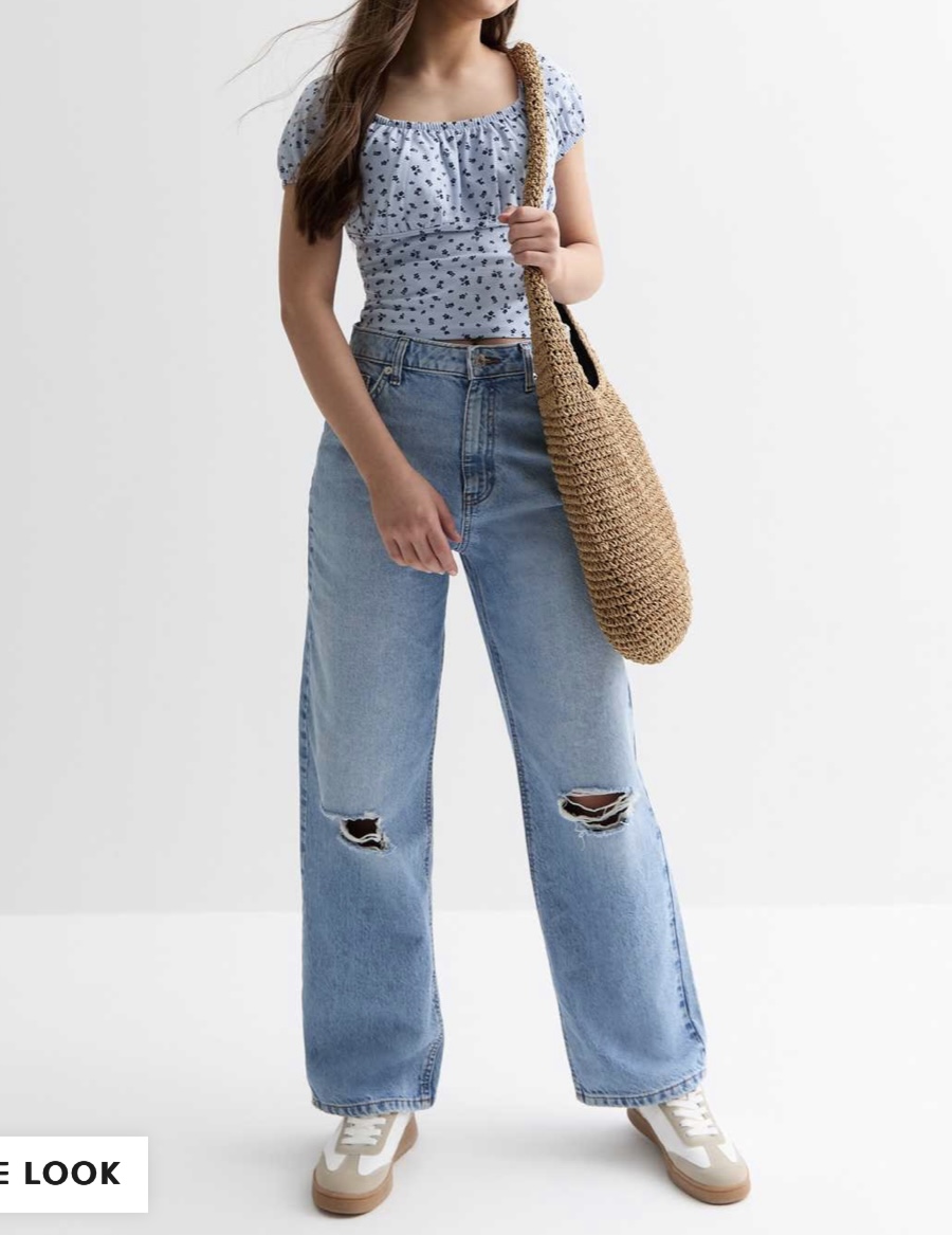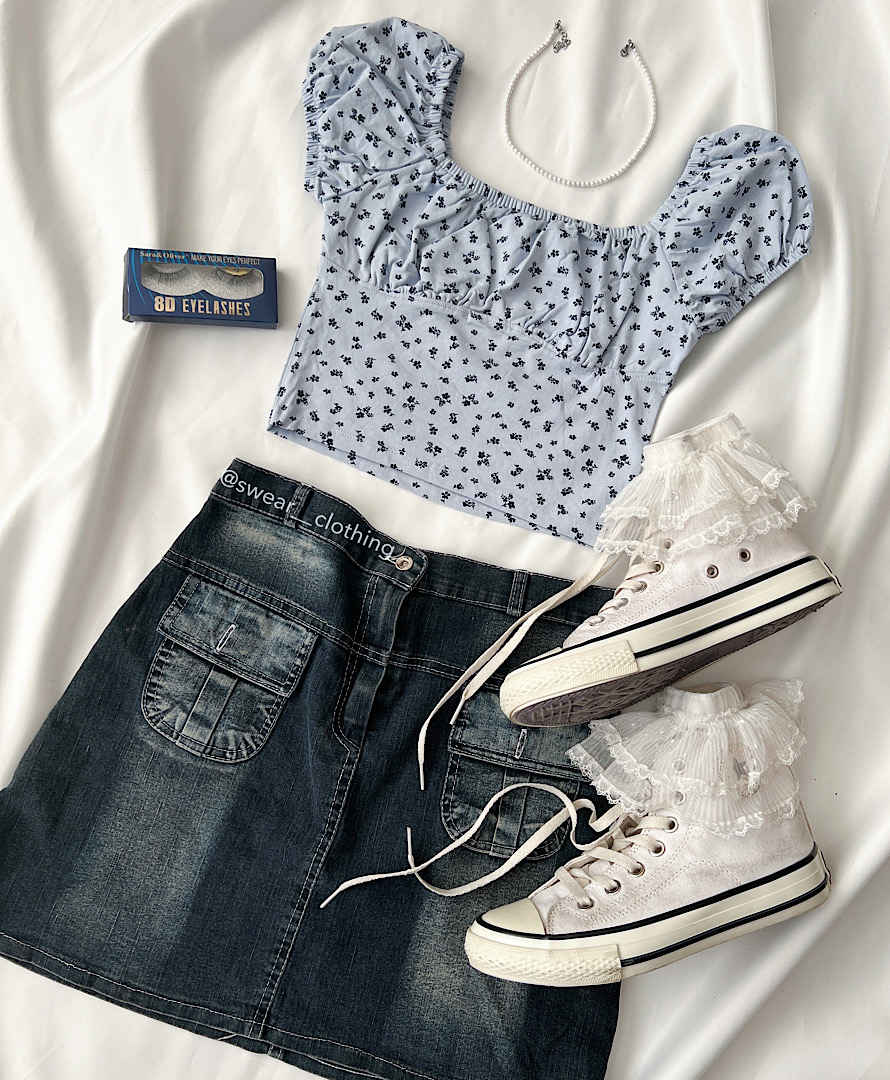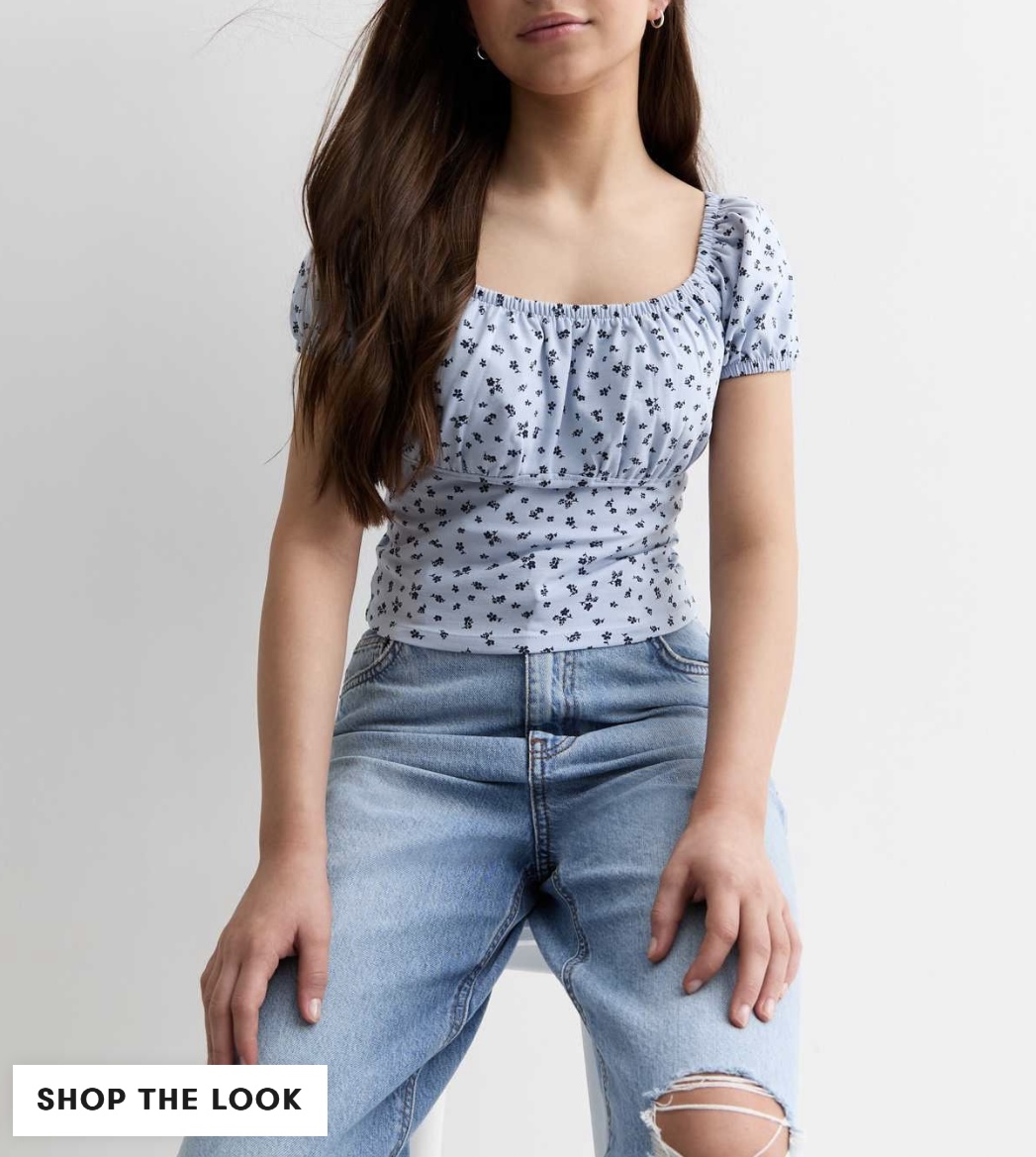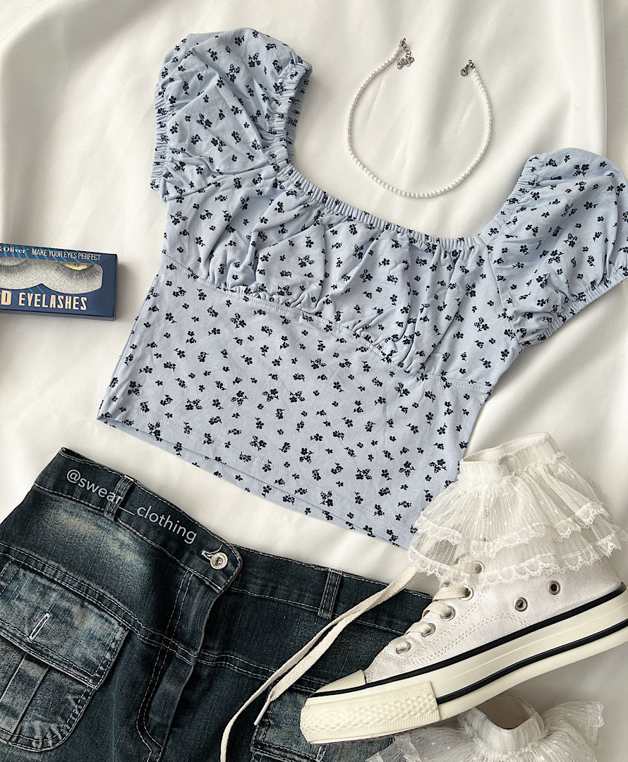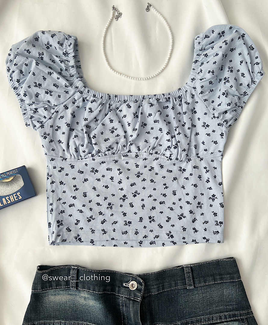 کراپ آستین پفی آبی